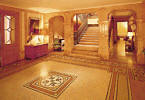 An unusual Italianate-style rose marble and mosaic floored entrance hall