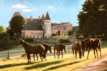 estate. The château sits on a hillside surrounded by gardens, rolling meadows